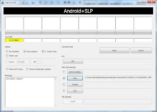 5- Conecte o aparelho no cabo USB e depois no computador, o Odin3 vai reconhecer o aparelho e irá encontrar uma porta ID:COM na cor amarela.